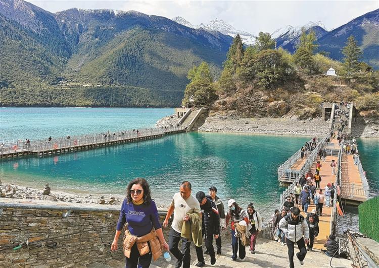 游客游览亚松卡风景区。摄影:丹增冉泽。游客在布达拉宫广场拍照。汤彬记者 摄:游客在林芝嘎拉桃花源拍照、游玩。记者次仁平措拍摄。游客身着藏族服饰在八角街拍照留念。照片由在罗布林卡游玩的游客丹增冉泽提供。记者 丹增坤培供图 作为“幸福五产业”之首的旅游具有独特的魅力,是西藏各族人民增收致富的重要手段。也是满足人民对美好生活新期待的重要组成部分。 “十四五”以来,西藏依托“世界屋脊”得天独厚的资源优势,系统布局山水脉络、人文环境为脉络,精耕细作,推动旅游业向多元化全面发展。化、高水平、全球化,为高质量发展提供良好回应。西藏依托雄伟的山河和深厚的文化底蕴,积极打造雪域高原优质旅游名片,大力推动文化与旅游全面融合,积极发展乡村旅游、文化旅游、民宿旅游、红色旅游、生态旅游等业态,文化旅游产业稳步发展。拉萨缩短节、日喀则珠峰文化旅游节、林芝桃花节、山南雅龙文化旅游节等一系列独具特色的品牌节庆活动,已成为旅游名片,吸引了无数优质游客。数据显示,今年前三季度,西藏接待国内外游客6370.73万人次,同比增长11.21%。旅游总支出7367.3万元比上年增长9.87%。蓬勃发展的旅游业已成为西藏经济发展的重要动力,给雪域高原各族人民带来了实实在在的利益,也为西藏可持续发展不断注入强劲动力。