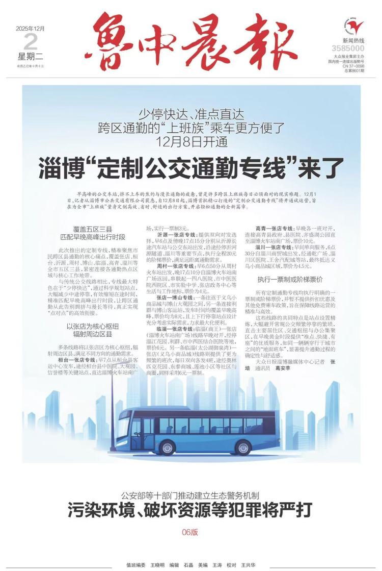 在公交车站,早高峰,赶不上车的恐惧、长途旅行的疲劳,曾经是很多跨区旅客每天不得不面对的现实问题。 12月1日,记者从淄博公共交通有限公司获悉,淄博市首批精心打造的“个性化公交出行线路”将于12月8日起正式试运营,开启舒适出行新篇章,为城市“上班族”打造高效、舒适、省时的出行方案。